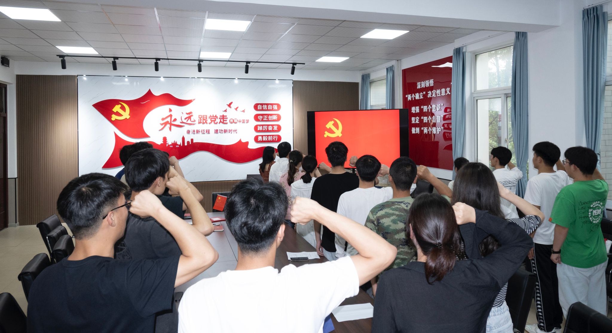 6月24日下午,智能制造学院党总支组织全体毕业生党员在惟实楼党员活动室开展主题党日活动,全体毕业生党员重温了入党誓词。大家齐诵入党誓词,再扬信仰决心,发自肺腑铿锵有力的声音,每名党员牢记对党的庄严承诺,鼓励党员同志以实际行动践行入党誓词。