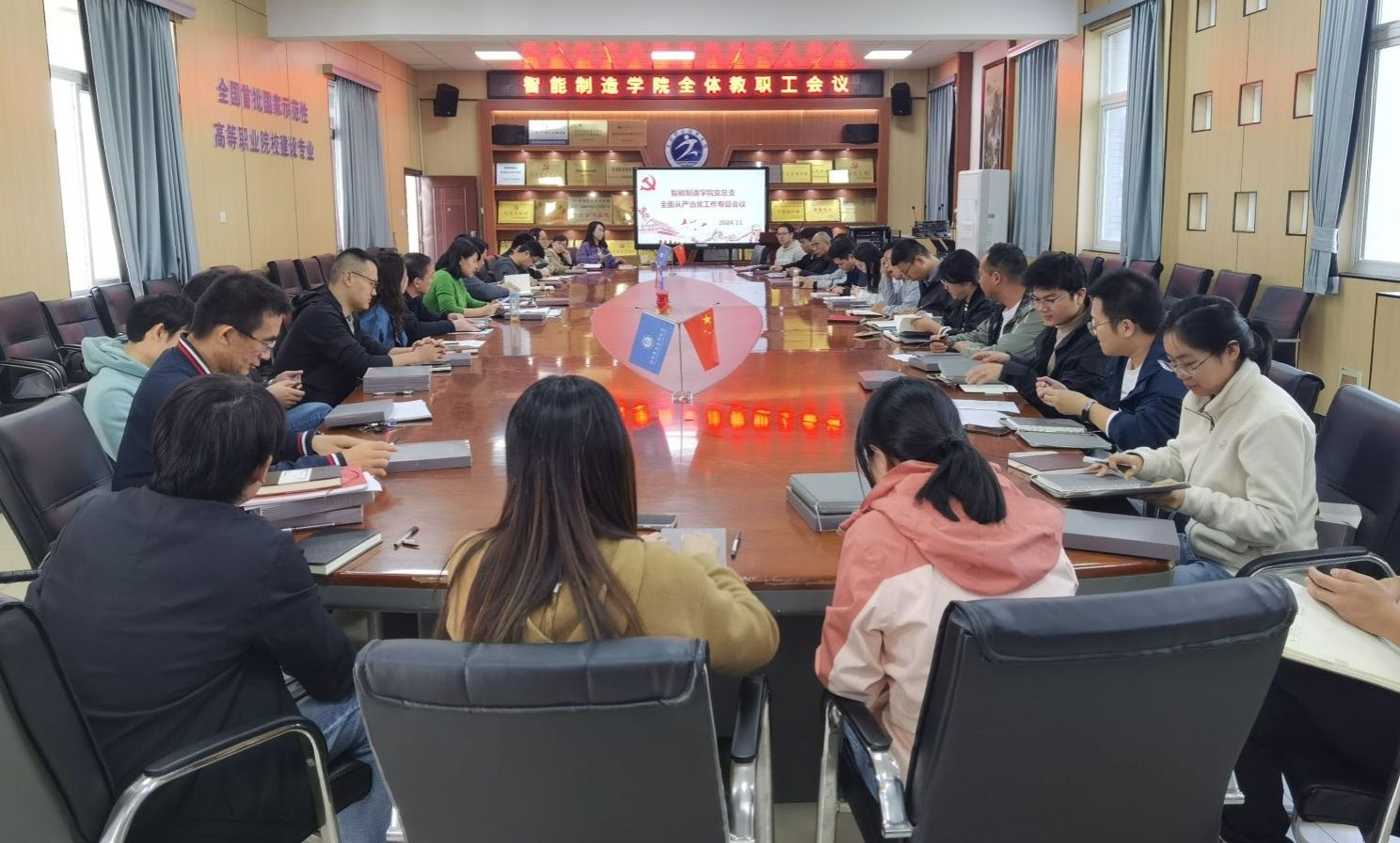 11月6日,智能制造学院党总支组织召开全面从严治党工作专题会,学院全体教师党员参加了会议。