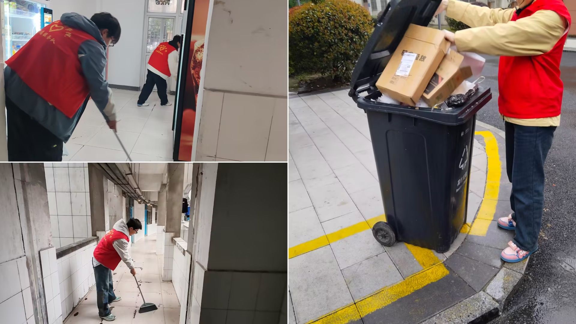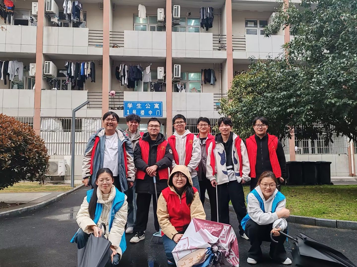 活动当天,同学们早早集合,在学生干部的有序分工下,迅速领取清洁工具,奔赴各自负责区域。大家在细雨中认真清扫着道路上的落叶、烟头、废纸等杂物,用扫帚仔细清扫积水和垃圾,用夹子清理垃圾桶周边的污渍,不放过任何一个卫生死角,确保校园环境的整洁与卫生。